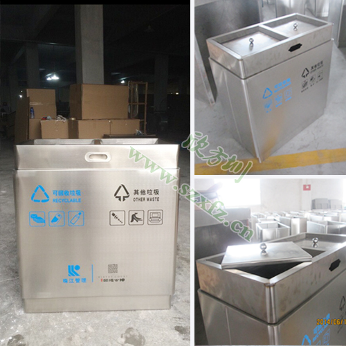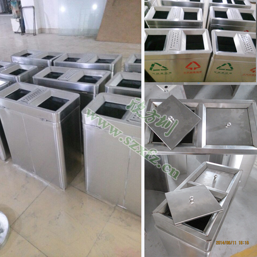 這批C185分類(lèi)環(huán)保垃圾桶是采用304#優(yōu)質(zhì)不銹鋼材料模壓成型,厚度足1.2mm,里面配置了厚度為0.4mm的鍍鋅板內(nèi)桶,堅(jiān)固耐用,不易破損。垃圾桶外觀為方形,閃爍著金屬的亮澤,高雅美觀,在制作方面也有精良的做工,注重細(xì)節(jié)的處理,做到無(wú)利口,不傷手! 桶身雙分類(lèi),正面絲印有“不可回收”和“其他垃圾”的分類(lèi)標(biāo)志,具有耐火安全,抗高低溫,適合各種惡劣氣候條件,再加上產(chǎn)品表面光滑,亮麗廣泛適用于各種場(chǎng)所,是電梯口、寫(xiě)字樓、學(xué)校、物業(yè)、賓館、酒店、機(jī)場(chǎng)、汽車(chē)站等擺放場(chǎng)地的首選。