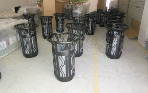 客戶訂購的這款F01花籃垃圾桶,名稱也叫鋼制垃圾桶。花籃式戶外垃圾桶頂圈圓管用35mm,厚1.5mm,扁鋼用厚度3.0mm,寬30mmm,花籃式戶外垃圾桶桶身上下圈厚度3.0mm*高65mm.花籃式戶外垃圾桶內桶分別用塑料桶或者玻璃鋼兩種材質。外觀呈花籃,整個形狀有點像打籃球的投籃口。學校的女同學,投遞垃圾時可以練習投籃,不在怕投不上高高的籃球架上去。環保與娛樂相結合,為校園添加不少樂趣。