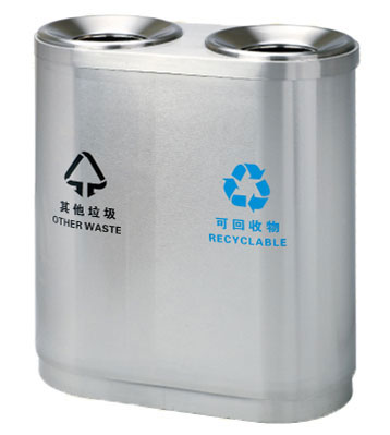 深圳新標準城中村街道社區(qū)不銹鋼五分類垃圾桶由有害垃圾、玻璃、金塑紙(為金屬、塑料、紙張的簡稱)、廚余垃圾、其他垃圾這5分類不銹鋼垃圾桶組合而成。其中金塑紙、其他垃圾日常產生量較大,所以分類收集容器也