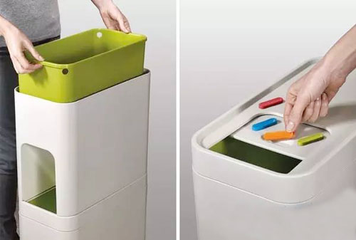 Stack 是一套廚房分類垃圾箱,是倫敦設計工作室PearsonLloyd 專門為廚具品牌設計的。這款垃圾箱是工作室的第三代垃圾箱,針對人們依舊使用一次性塑料袋的習慣,在細節上做了改進,且節省空間。