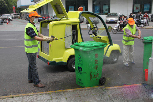 日前,區(qū)環(huán)衛(wèi)處引進的高效垃圾桶清洗車正式“上崗”了,循環(huán)對全區(qū)56條主次干道、近1500個環(huán)衛(wèi)垃圾桶進行清洗。