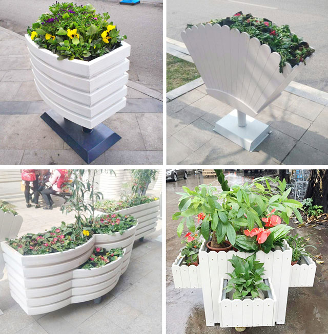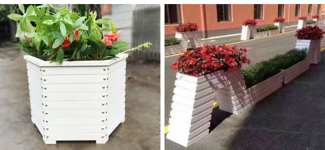 • 產品材質:塑木花箱指木塑復合材料,經擠壓、模壓、注塑成型等塑料加工工藝,生產出的型材制作而成的花箱。