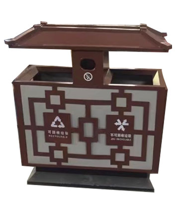 中國風戶外鋼制分類垃圾桶工廠批量生產圖
