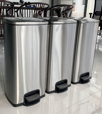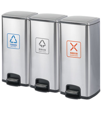 欣方圳90L家用室內不銹鋼腳踏三分類垃圾桶批量生產圖