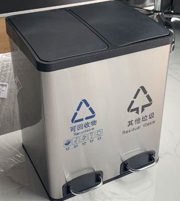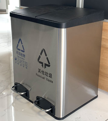 欣方圳30L45L小區酒店不銹鋼室內分類垃圾桶緩降桶門圖