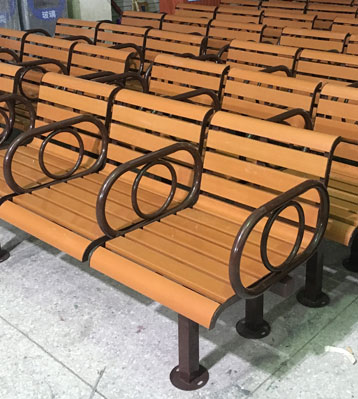 欣方圳戶外鋼制烤漆塑木帶扶手靠背園林椅椅條