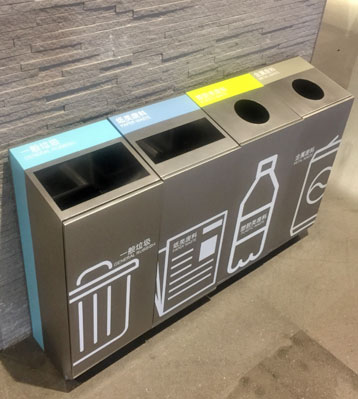 欣方圳商場不銹鋼室內滑軌四分類果皮箱批量生產圖