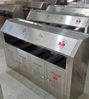 • 使用范圍:斜切面戶外不銹鋼四分類垃圾桶表面光滑、亮麗,是市政、企業(yè)、學(xué)校、小區(qū)、酒店、機場、汽車站等戶外分類垃圾收集擺放的首選。