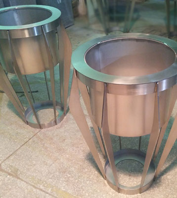 • 產品材質:不銹鋼異形景觀花瓶可采用5mm加厚201#/202#/304#不銹鋼材料模壓或焊接成型,金屬亮澤,內外表面光潔,易于清潔,表面可做電鍍壓紋、水鍍、蝕刻、納米鎳、無氰堿性光亮鍍銅工藝效果,無指紋處理高檔大氣;