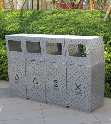 深圳景區(qū)不銹鋼鏤空垃圾桶幾何藝術(shù)切面造型,采用5mm加厚316#不銹鋼材質(zhì)而成,單個(gè)可組成室內(nèi)外二、三、四分類垃圾桶。分類標(biāo)識(shí)蝕刻后填漆,不...