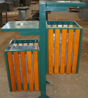 小區戶外鋼木分類垃圾桶頂蓋圖