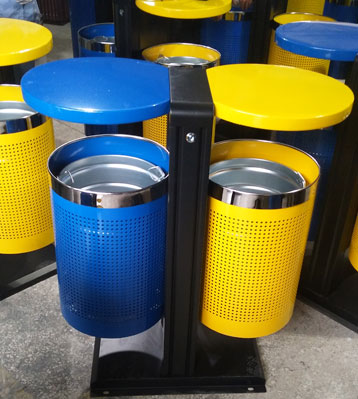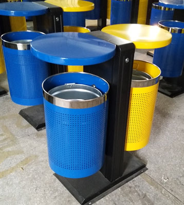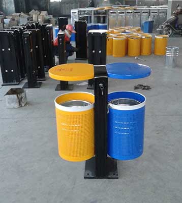 欣方圳戶外鋼板分類(lèi)垃圾桶工廠批量生產(chǎn)圖