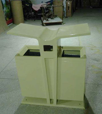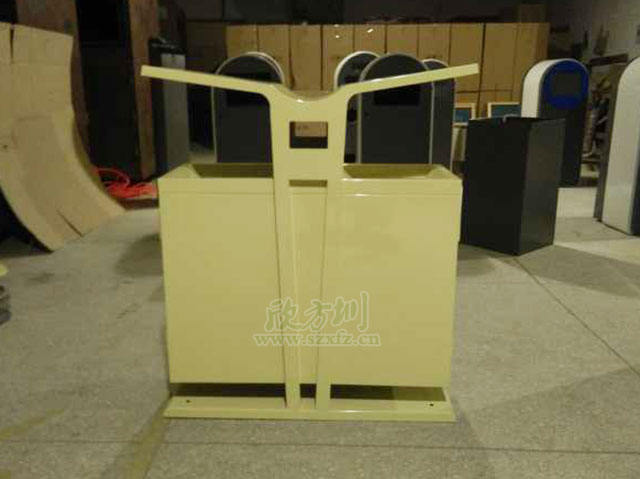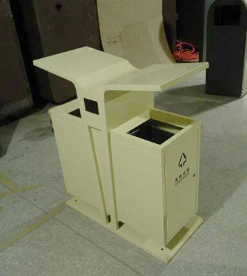 • 產品材質:欣方圳展翅分類鋼制垃圾桶采用優質冷軋鋼材料經剪鈑下料、折彎、沖壓、焊接、打磨、等工藝:表面經過除油、噴砂防銹處理后,再進行酸洗磷化處理;表面清理干燥后整體進行靜電噴涂或烤漆處理,靜電噴涂是經過流水線高溫固化爐固化后再出爐冷卻,加工后的塑粉附著力強,不易剝落;